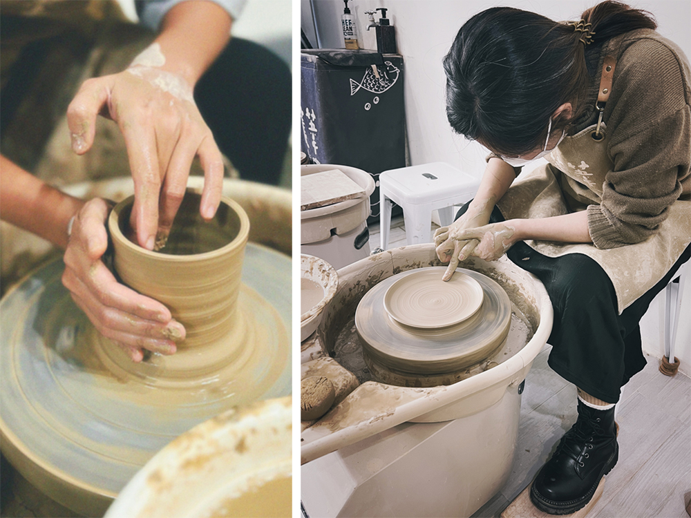 製作陶藝的過程充滿專注與共鳴,彷彿進入一個自我忘我的「Me Time」。無論是運用轆轤(陶輪)拉胚製作杯、碗、盆等器皿,還是以雙手捏塑陶土,這一刻的創作過程不僅能培養耐心,還在平緩的節奏中細膩地滋養了對藝術美感的深刻體悟。