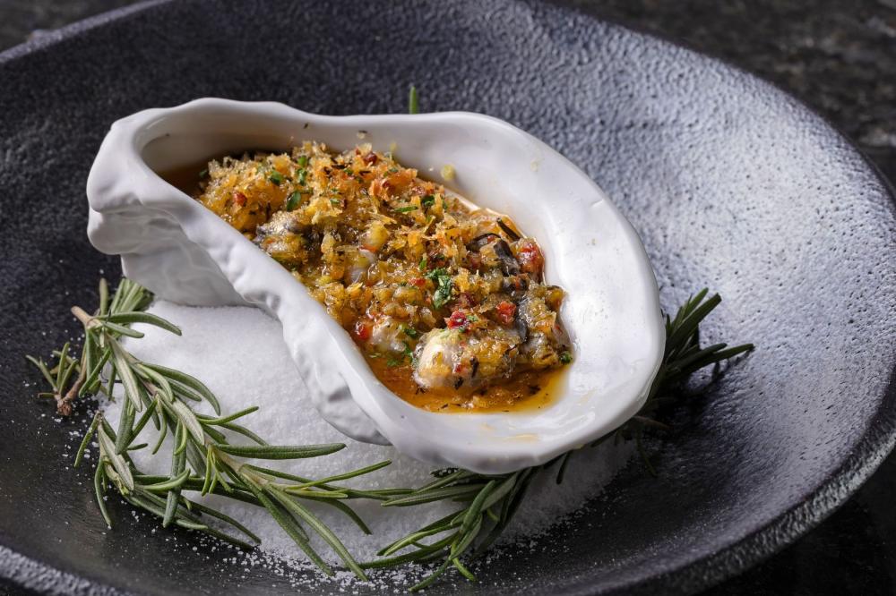 起源於美國紐奧良的經典生蠔料理,因其醬料濃郁、滋味奢華,讓人聯想到當時全美最富有的洛克菲勒家族而得名。廚師團隊將進口生蠔以台灣的「東石鮮蚵」取代,搭配特製香料奶油與自製香草麵包粉焗烤,蚵肉鮮美、飽滿脆滑,奶油與麵包粉噴香卻不搶蚵味鮮爽,「烤洛克菲勒鮮蠔」充分展現台灣海鮮的豐饒滋味,售價為480元。