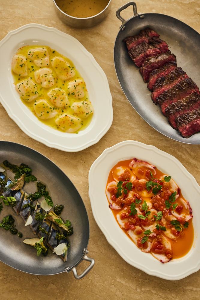 Bonami 的招牌前菜「整顆朝鮮薊佐大蒜鯷魚醬」,選用古希臘時期流傳至今的朝鮮薊花苞,佐以風味濃烈的大蒜鯷魚醬,造型吸睛、兩種吃法新穎有趣,是桌邊共享的理想開場;海鮮愛好者可品嚐「招牌醃漬鮭魚佐茴香沙拉」,預先以蒔蘿與香料醃漬的鮮嫩鮭魚,風味清爽細膩,是法國人餐前最鍾愛的經典開胃菜;推薦主菜「香煎檸檬鰨魚」,選用台灣少見的整尾鰨魚,以法式技巧香煎並澆淋自製醬汁,展現細緻肉質與明亮風味,是法國當地的人氣料理。