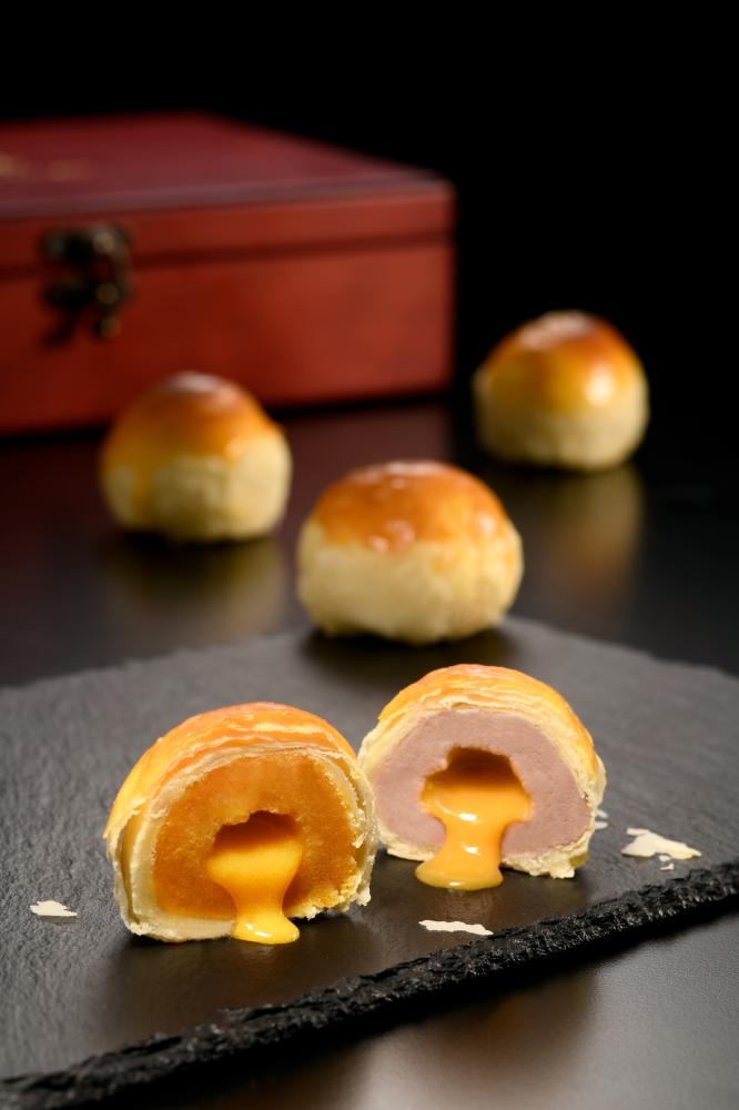 港式月餅的經典首選,今年推出「金玥流心三色月餅」,匯集高人氣的流心奶黃、流心芝麻與流心陳皮紅豆三種口味。這款新品以香港傳統飲食文化為靈感,強調重現道地風味與對食材的極致講究。主廚團隊嚴選上等原料並嚴格控管烘烤火候,其中「陳皮紅豆沙」更是精選珍稀的 20 年熟成新會陳皮與頂級大紅豆慢熬而成,口感綿密香濃,層次豐富,氣韻沉穩。三款人氣口味一次滿足,傳承經典同時驚豔味蕾。憑藉獨特的烘烤與製餅工藝,這款月餅在室溫下即可品嚐到流心口感,帶來色香味俱全的極致味蕾體驗。
