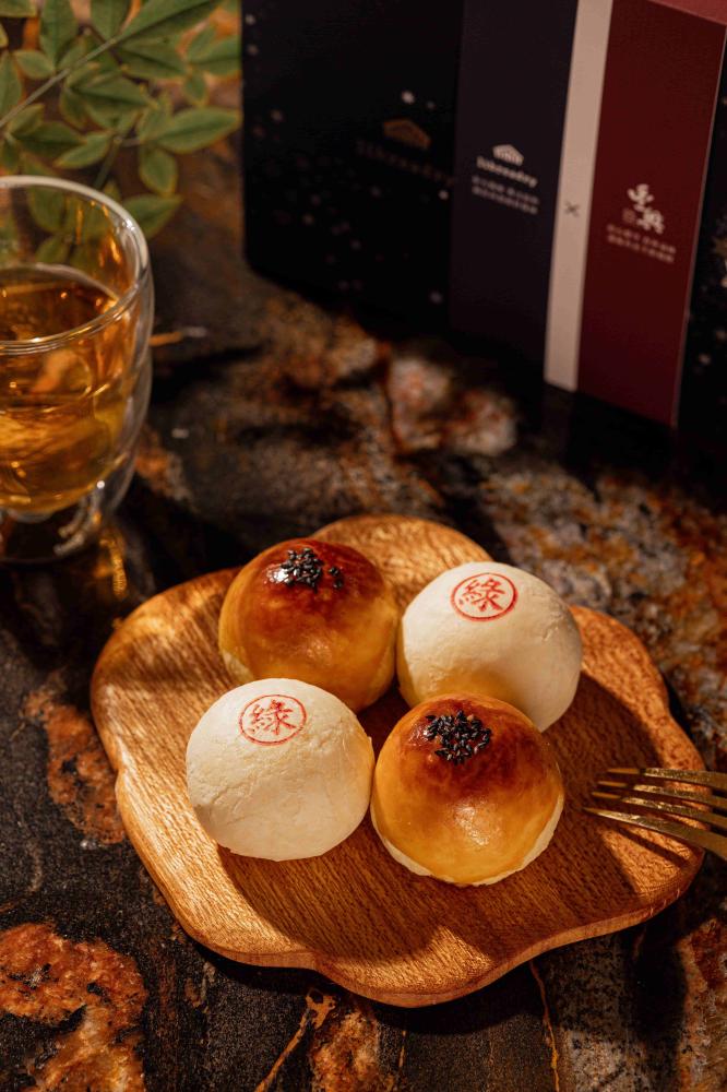 桃山餅皮月餅口味也有3種,「抹茶紅豆」抹茶苦甘與紅豆餡融合,經典日式韻味;「麻豆白柚」融入台南麻豆柚子清新果香,酸甜迷人;「茶香烏龍」茶香馥郁,回甘悠長。