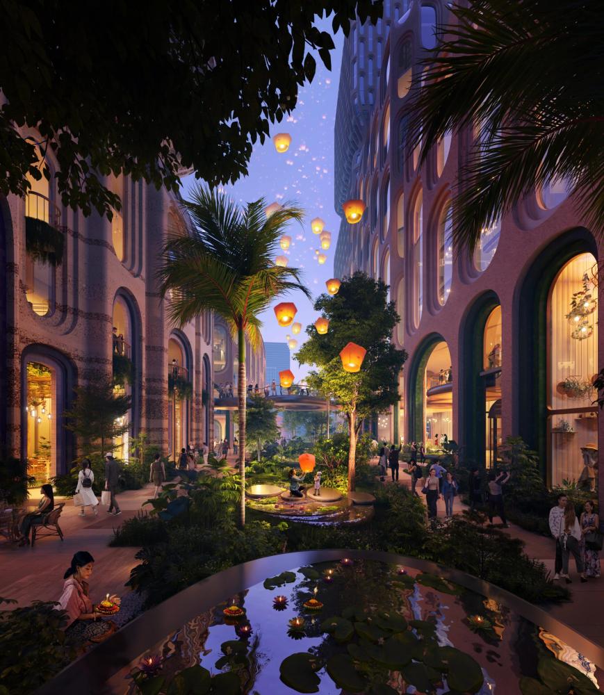 「Hatai」的主體建築群,猶如一連串被放大且層層堆疊的巨大「發光燈籠」,柔和靈動的造型,打破現代摩天大樓常見的生硬方正輪廓,將為曼谷城市風景注入一抹不同的泰式風情。「Hatai」的設計核心是將泰國文化「傳統燈籠工藝」的細節、情感融入城市肌理,讓建築物本身就成為文化的載體。