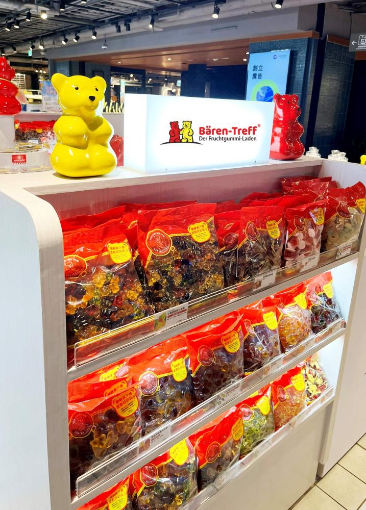 Bären Treff 德國派對熊在台北誠品生活南西 B1 正式開幕,延續品牌「歡樂與分享」的精神,整體空間以繽紛的果汁軟糖色調為主視覺,搭配紅色小熊作為櫃上招牌形象,以及裝滿軟糖的透明糖果罐等繽紛元素點綴空間,讓整體店面宛如被甜蜜糖果包圍的派對現場。