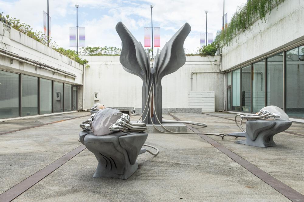 伊娃・喬瑟邦(1975年生於巴黎)的雕塑《此處》(2025),以分藏兩地的古典繪畫《富春山居圖》為靈感,打造出一座鏡像森林,並將分離的主題轉化為充滿反思意蘊的視覺詩篇。