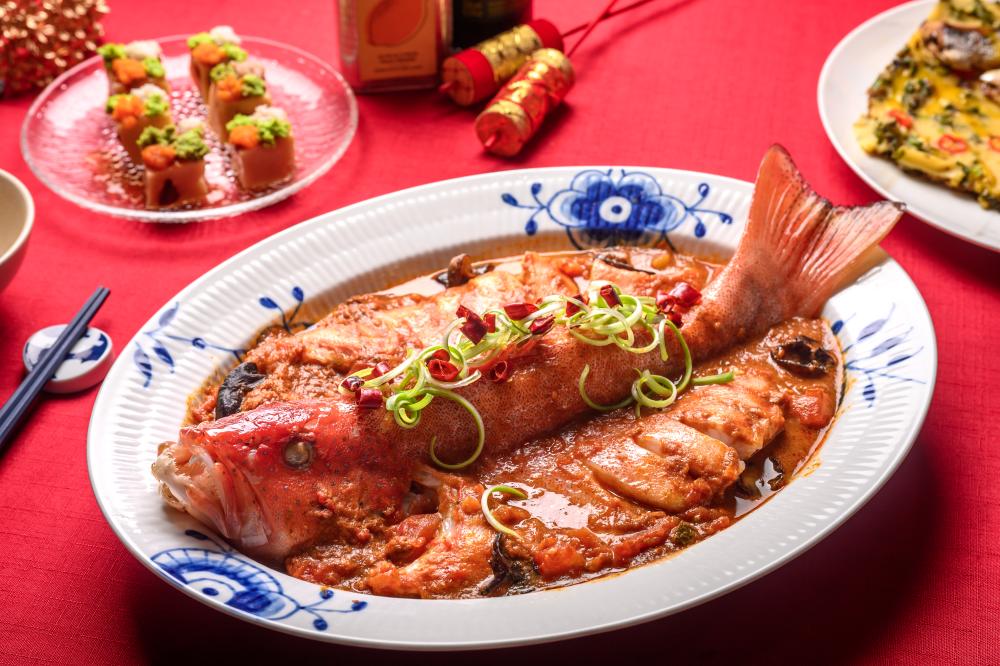 以年節不可或缺的魚料理為例,清蒸後淋上橄欖油、少量葡萄香醋即可提香提味,不需繁複醬汁也能呈現清爽細緻、象徵年年有餘的主菜。進階變化如「煨海魚」,利用市售蔬菜湯罐頭為湯底,加入番茄與雲耳小火煮約10分鐘,上桌前以熱油爆香蔥絲與乾辣椒即可完成,快速又入味。