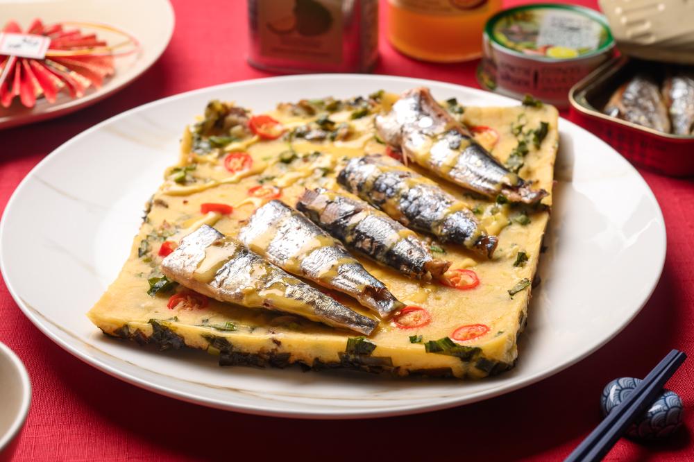 除了主菜,罐頭食材與冷盤也是省時好選擇。這道沙丁魚蔥香煎餅就是將切碎的沙丁魚與麵粉、水和蛋拌勻成粉漿後,用橄欖油、蔥花、辣椒一起煎成餅皮,再鋪上整尾的沙丁魚、淋上蛋黃醬就是香噴噴的沙丁魚煎餅了。