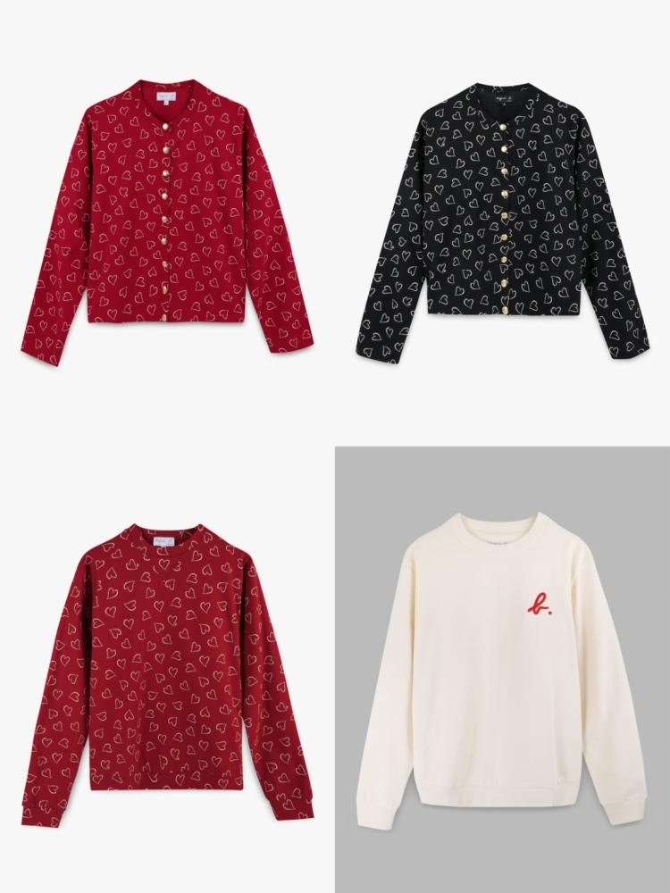 price 新年限定愛心印花開襟衫 | 售價 NT$8,280 元、新年限定愛心印花衛衣 | 售價 NT$7,280 元、新年限定b.logo長袖衛衣 | 售價 NT$6,980 元