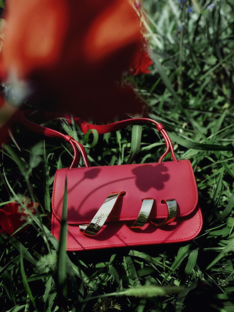 Testoni 2026春夏系列以虞美人紅色牛皮包款為造型亮點,在自然草地與光影交織中,展現義式優雅與歡樂節慶的完美平衡,詮釋低調卻充滿力量的新年時尚態度。