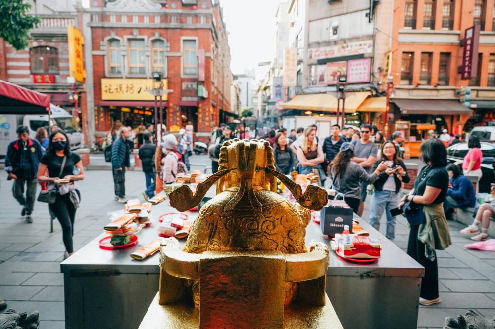 霞海城隍廟的月老以「快、準、敢應驗」聞名,特別適合祈求明確對象、短期內有進展的感情狀態,也因此吸引大量上班族、外地旅客與國際訪客慕名而來。參拜流程講究順序與細節,從向城隍爺稟告身分、說明願望,到向月老清楚交代條件與期待,講求條列分明、不含糊。紅線、糖果等供品各有象徵意義,被視為加強緣分流動的輔助元素。與龍山寺的日常現實感或指南宮的冷靜指引相比,霞海城隍廟更像城市裡一座高效率的情感窗口,信仰與生活節奏緊密貼合。即使只是短暫停留,也能感受到這座小巧廟宇所承載的強烈集體期待,成為大稻埕街區中最具話題性的信仰地標之一。