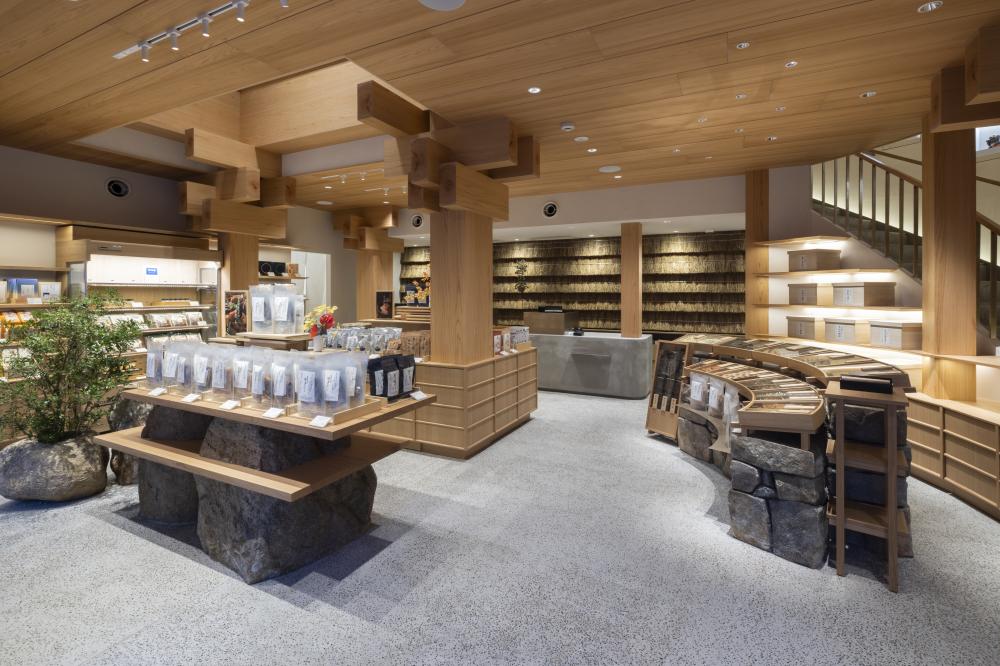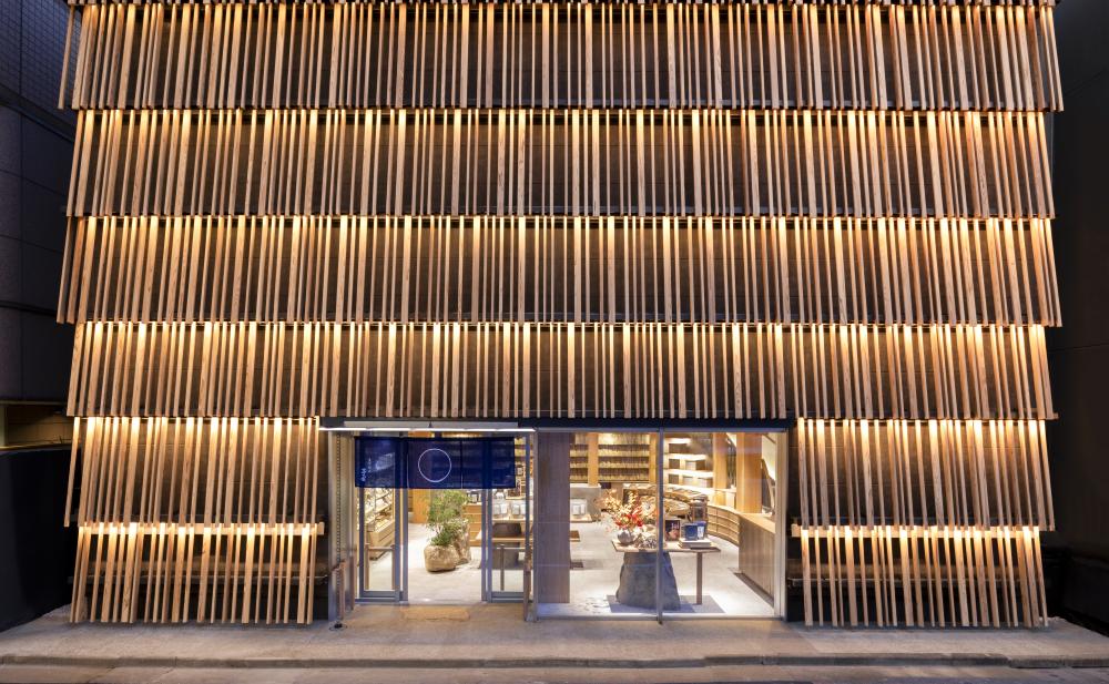 以釀造醬油起家的久原本家,是福岡著名的百年老舖,旗下的茅乃舍,專門販售日本傳統的高湯調味食材像是鰹節、昆布、炭火烤飛魚與飛魚煮干…等等,匯聚環繞日本的海洋之味,是日本非常有名的調味品老店。今年,茅乃舍終於首次進駐東京銀座開設旗艦店,店舖邀請著名建築大師隈研吾先生設計打造,銀座旗艦店外觀以重疊的杉木格子庇棚呈現茅草屋屋簷的意象,營造溫潤的氛圍,為銀座街景注入全新的氣息。
