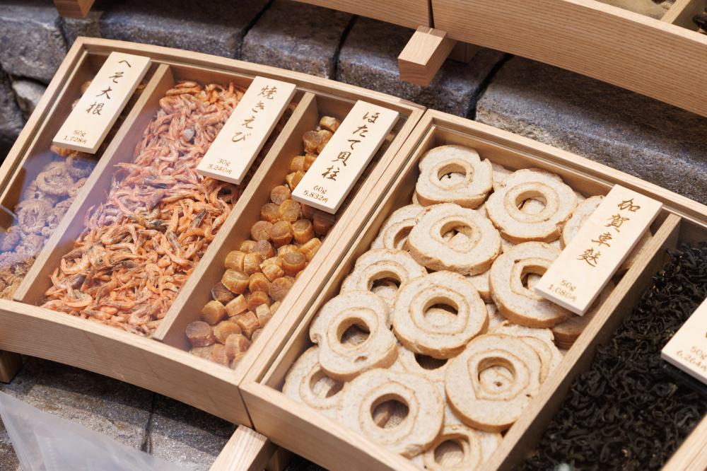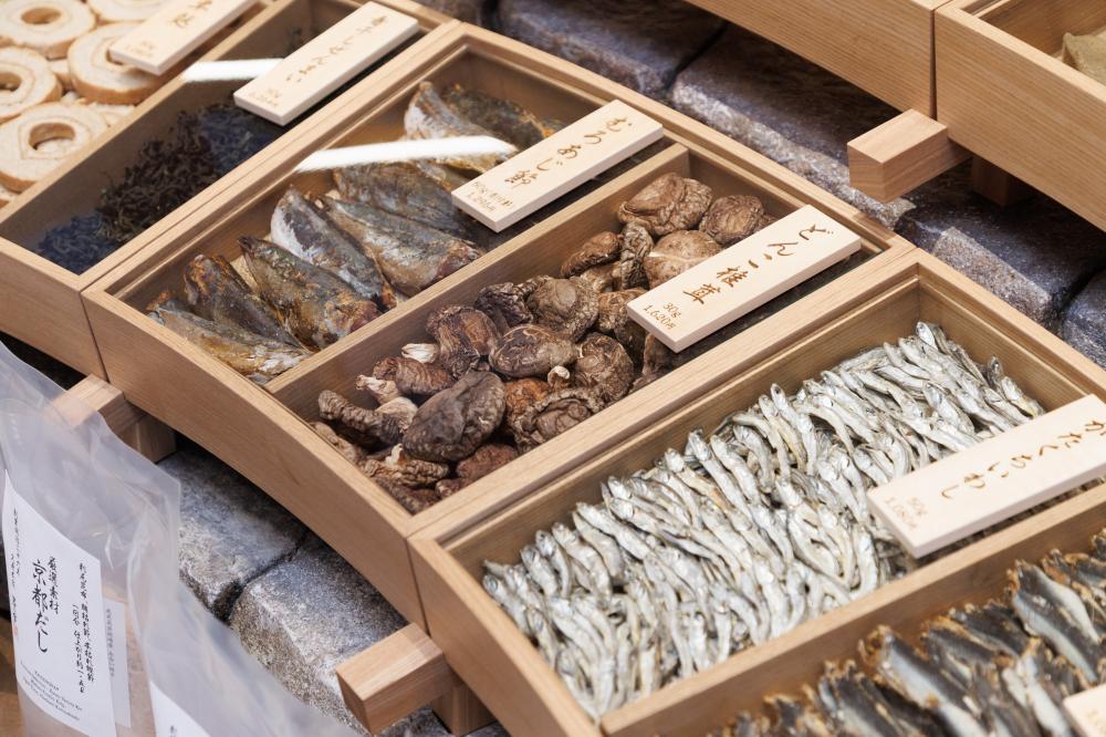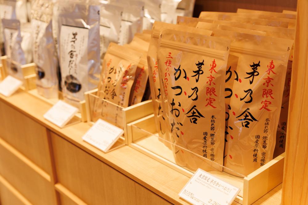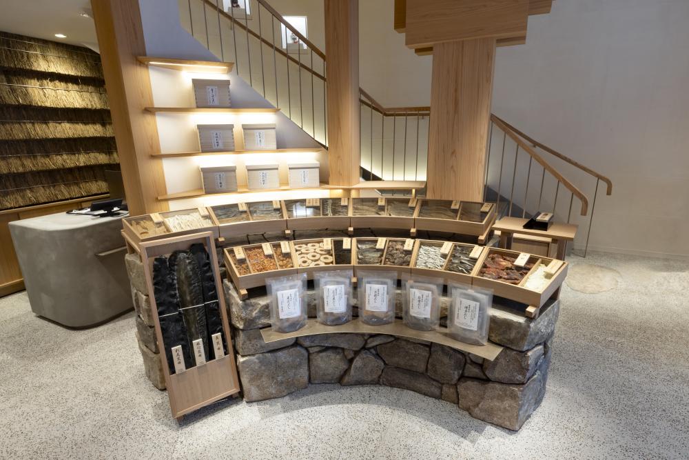 銀座茅乃舍是這家老舖首次在東京開設的旗艦店,一樓空間呈現了茅乃舎對「素材」的嚴謹堅持。除了主力高湯產品外,更提供本店核心特色,超過20種「乾物」素材的單品選擇。這些商品包含茅乃舎從日本各地精心挑選的食材,讓客人能感受和食文化的純粹精髓。同時推出五款結合各地特色食材的「茅乃舎精選素材乾物組」(東京、名古屋、能登、京都、博多),附上各地的鄉土料理食譜,讓消費者能在家輕鬆體驗和食豐富多樣的高湯文化。