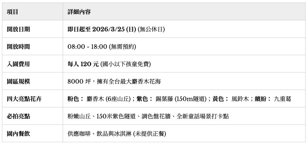 延伸閱讀:全台最大淡水紫藤花園公開2026花期!上千株夢幻花瀑開放17天,春季限定仙境必須朝聖